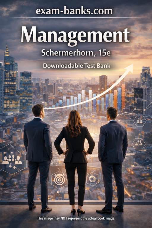 This test bank is made for Management, Schermerhorn, 15e by John R. Schermerhorn. It is considered one of the most demanded Management textbooks in business schools worldwide. It fits well with Principles of Management, Introduction to Management, and Business Management courses. Also available: the Canadian edition of Management by Schermerhorn in its 5th edition.